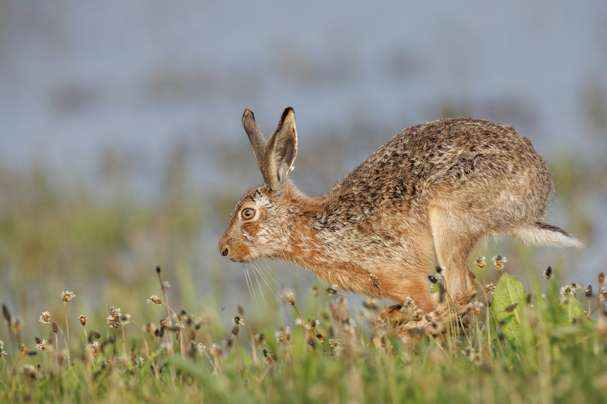 Het is nu echt ‘hazen-tijd’. In februari ligt zelfs een piek van de ‘rammeltijd’. De ‘rammelaars’ -wat een kreet voor een mannelijk dier!- beginnen hun absurde paringspraktijken in deze maand. En, absurd is hét! Want hoe schattig ‘haasje over’ ook klinkt, het is het verre van dat! De haas is een echte einzelgänger, hij leeft grotendeels alleen in een vrij groot territorium (wel tot 300 ha). Daarnaast vertoont hij autistische trekjes. Zijn gebied kent vaste zonplekken, latrineplekken en natuurlijk zijn leger. Alles is dus strak georganiseerd. Komt de haas buiten zijn gebied raakt hij gestrest, alles moet vertrouwd en geordend zijn. Dit gestructureerde leven wordt in februari even verlaten voor de al eeuwen oude strijd: wie mag zich voortplanten, wie is de beste haas! De rammelaars verzamelen dan in kleine groepen en zij zullen onderling moeten uitmaken wie het vrouwtje mag dekken. Het lijkt wel of van het hele jaar alle agressie wordt opgespaard voor dit moment. De gevechten die ontstaan onder de mannetjes, gaan met harde klappen van voor- en achterpoten gepaard. Ze staan op hun achterpoten en slaan, schoppen en trekken het haar van de tegenstander uit. Ze rennen hard achter elkaar en maken hoge luchtsprongen. En dan komt hier ook het ‘haasje over’ bij kijken. Want als het lukt om over de concurrent heen te springen kun je met een wel gemikte trap van de achterpoten, de ander in zijn nek raken… en hiermee is de competitie dan ook in één keer uitgelopen in de begrafenis van je concurrent. Hé ba! Wat enorm akelig vind ik dit! Jakkes!! Kijk een beetje knokken, een robbertje vechten, een beetje stoer doen. Oké, daar kan ik wel mee leven. Al die mannelijke aandacht is best geinig weet ik als ‘vrouwtjes-dier’, maar dit! Nee, dat gaat me echt te ver. Zucht, helaas zo gaat het ook in de natuurwereld. Tot mijn opluchting komt het niet heel vaak voor… Ik moet wel zeggen dat Mevrouw Haas trouwens ook niet echt gediend lijkt van al dit geweld. Want nadat de mannen zijn uitgeknokt laat zij de winnaar nog eens flink rennen. Want dat de mannen er over ‘uitgesproken’ zijn wil nog niet zeggen dat zij er mee akkoord is. Het vrouwtje begint heel hard te rennen en de mannen die zichzelf het stoerste vonden moeten nu nog eens een flinke sprint trekken om het vrouwtje bij te blijven. De haas met de beste conditie is uiteindelijk diegene die de felbegeerde paring daadwerkelijk mag doen. Tja, je moet er wat voor over hebben…
